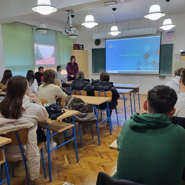 Dana 24.11.2025. u Srednjoj školi Plitvička jezera u Korenici održana je prezentacija o uslugama HZZ-a i Cisok-a te radionica pod nazivom “Prijava i kreiranje profila u sustavu e-građani i na portalu Burza rada” sa učenicima završnih razreda smjera hotelijersko turistički tehničar, konobar i kuhar. Učenici su dobili informacije kako im HZZ i Cisok centar može pomoći pri izlasku na tržište rada te koje mogućnosti i prednosti ima korištenje sustava e-građani.