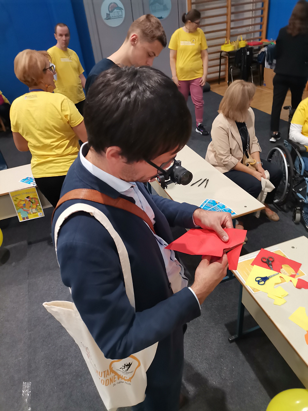 Na Festivalu „Tvoj trenutak, moja svakodnevica“ kroz likovnu radionicu „Osjeti umjetnost“ okušali smo se u bojanju s povezom preko očiju te šivanju i izrezivanju papira nedominantnom rukom. Ove aktivnosti pomogle su nam osvijestiti dodatnu zahtjevnost snalaženja u svakodnevnim situacijama na koje nailaze osobe s različitim vrstama invaliditeta. Uz spomenutu radionicu organiziran je raznolik sadržaj namijenjen svim generacijama i osobama različitih sposobnosti, od dramskog stvaralaštva, uključivanja u korektivno vježbanje, igranja košarke i dr.