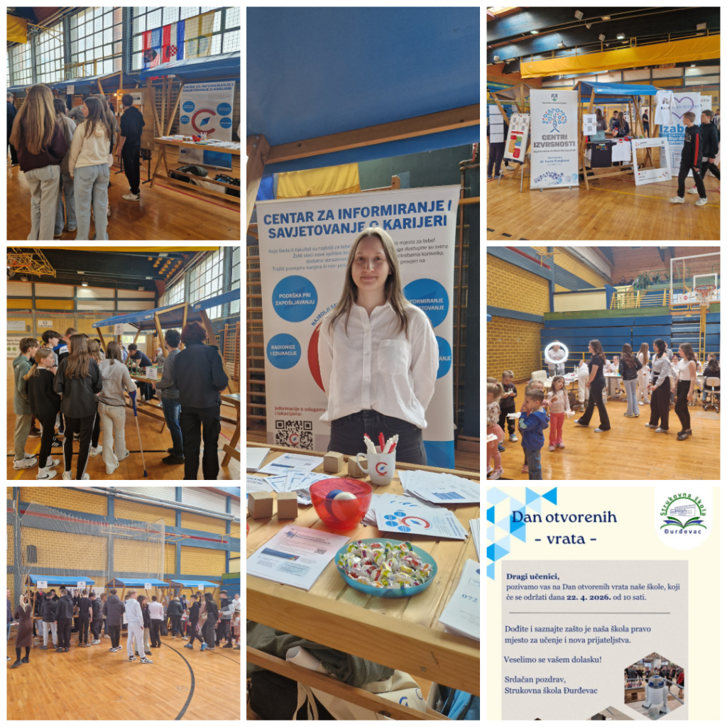 Dan otvorenih vrata održan je 22. travnja u Strukovnoj školi Đurđevac s ciljem predstavljanja škole i dostupnih obrazovnih programa kao i institucija povezanih s obrazovanjem i profesionalnim usmjeravanjem učenicima osnovnih škola. Tom prilikom djelatnici i učenici škole posjetiteljima su na zanimljiv i interaktivan način predstavili zanimanja koja škola provodi, s posebnim naglaskom na praktičnu nastavu te alate, uređaje i tehniku povezanu s pojedinim zanimanjima.