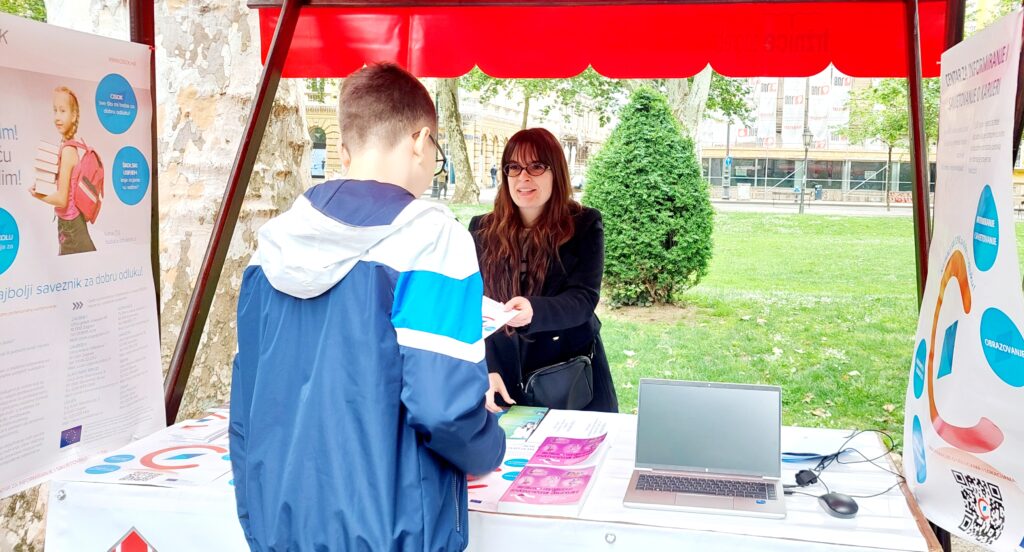 Tradicionalno i ove godine, Hrvatski zavod za zapošljavanje, Područna služba Zagreb, Odjel za profesionalno usmjeravanje i obrazovanje u sklopu vlastitog štanda predstavio je svoje (besplatne) usluge i mogućnosti koje korisnici mogu dobiti. Učenici su također imali priliku rješavati računalni program „Moj izbor“, upoznati se s CISOK stranicom te portalom Razvoj karijere. Informirani su o dostupnosti usluga profesionalnog usmjeravanja i savjetovanja, Brošurom „Kamo nakon osnovne škole“ te su im dijeljeni letci i promotivni materijal Hrvatskog zavoda za zapošljavanje.