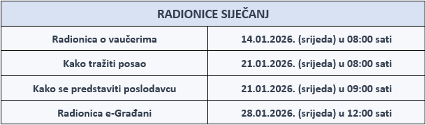 U siječnju CISOK Požega organizira niz aktivnosti namijenjenih razvoju karijere i povećanju kompetencija za traženje posla. Osim grupnih aktivnosti, nudimo i mogućnost individualnih savjetovanja uz prethodnu najavu. Posjetite nas i saznajte sve potrebne informacije o željenom radnom mjestu i prijavi na isto, mogućnostima nastavka školovanja ili promjeni u karijeri. Nudimo Vam besplatno informiranje, savjetovanje i profesionalno usmjeravanje. Raspored svih aktivnosti možete pogledati u Moj CISOK aplikaciji.