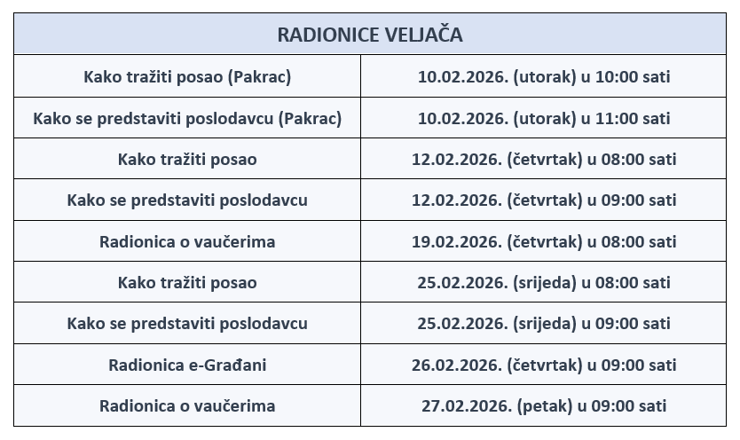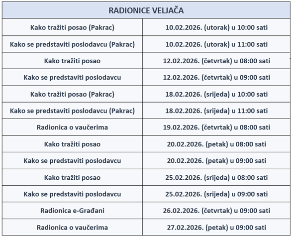 U veljači CISOK Požega organizira niz aktivnosti namijenjenih razvoju karijere i povećanju kompetencija za traženje posla. Osim grupnih aktivnosti, nudimo i mogućnost individualnih savjetovanja uz prethodnu najavu. Posjetite nas i saznajte sve potrebne informacije o željenom radnom mjestu i prijavi na isto, mogućnostima nastavka školovanja ili promjeni u karijeri. Nudimo Vam besplatno informiranje, savjetovanje i profesionalno usmjeravanje. Raspored svih aktivnosti možete pogledati u Moj CISOK aplikaciji.
